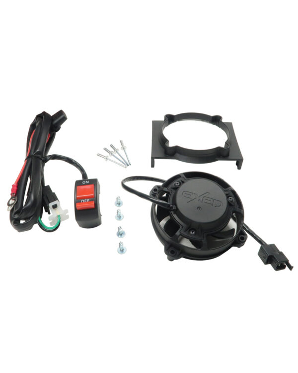 EXED® Parts – Kit with Exed Radiator Fan and Mounting Bracket for KTM and Husqvarna, with LED On/Off Switch, Dirt Bike Models from 2017 to 2023