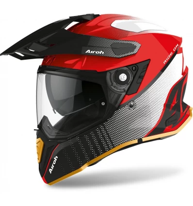 The Commander Helmet by Airoh® represents the latest on-road/off-road development of composite fibers. The helmet is characterized by a sophisticated design and sophisticated technical solutions. He is a helmet for off-road driving/ATV motorcycles or in short: for all riders who live out fully in the motorcycle sport. Versatility allows this helmet to be used in two different configurations: with visor and screen for all-road use, with no visor and screen for total naked and road use. The latest Airoh technologies are packaged in this unrivaled model that ensures comfort and total protection in demanding situations. The extra-wide visor with Pinlock® inner lens, the three-zone ventilation, the aerodynamic shade, the fold-up sun visor and the Bluetooth® preparation are just some of the features. The clear lines are the absolute protagonists of this helmet, which will outline the curves of your tours.