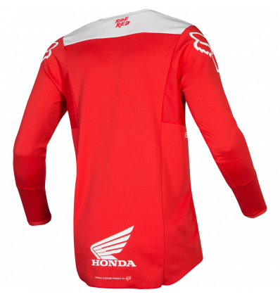 The Fox 180 Honda Jersey uses moisture wicking fabric on the main body to keep you dry and comfortable. Side panels are ventilated to increase airflow through the jersey, both aiding in moisture management and helping to regulate body temperature. Lightweight arm cuffs provide a precise fit without feeling restrictive, and a drop tail design keeps the jersey tucked.