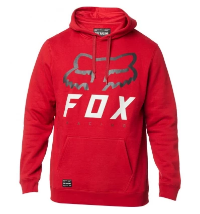 A full-sized Fox head cropped logo sits above the Moth F-O-X wordmark, giving the Heritage Forger pullover hoodie a bold look to show your Fox pride on race day.
