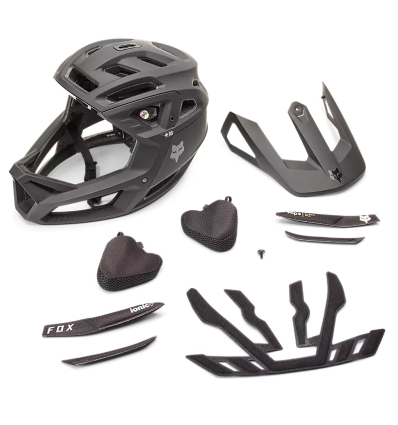 Key Features BOA® Fit System Mips® Integra Split Adjustable visor Under-visor GoPro Mount Multi-sized cheek pads to optimize fit Lightweight, next-level full-face helmet The Proframe RS Helmet takes the lightweight breathability of the Proframe and takes it to the next level of safety and performance. Featuring the all-new Mips® Integra Split protection system, which combines a dual density foam – for high and low speed impacts – and a low friction layer between the two layers designed to reduce rotational forces in a crash that would otherwise be transmitted to the brain. Designed to meet the needs of all-mountain riders and enduro racers, the increased ventilation and decreased surface contact of the helmet keep you cool on long rides, while the Ionic+ and anti-microbial liner and multi-sized cheek pads provide optimized comfort and fit. The updated BOA® Fit System offers micro-adjustability providing class-leading fit and security. The chinstrap utilizes a FIDLOCK magnetic closure system for easy-open and close, even with gloves. The 3-position adjustable visor with lock down screw is compatible with goggles. Those looking to capture every sweet run will appreciate the removable, under-visor GoPro mount on the Fox Proframe RS mountain bike helmet. Specifications BOA® Fit System for class-leading fit and security Equipped with Mips® Integra Split low friction layer Dual density foam for high and low speed impacts 3-position adjustable visor compatible with goggles Removable under-visor GoPro mount included Increased ventilation and decreased surface contact area for improve cooling Ionic+ anti-microbial liner to reduce odor Multi-sized cheek pads to optimize fit FIDLOCK magnetic closure system on chin strap Weight: 820 g (size medium) Certifications ASTM F1952 – DH Certified ASTM F2032 EN 1078:2012 + A1:2012 AS/NZ 2063-2020 CPSC 1203 Size Sizes: small, medium, and large (see size guide for measurements) How to Dial Your Fit BOA® dial: 52 micro adjustments – counterclockwise to loosen, clockwise to tighten – allows for a precisely dialed fit. Adjust while wearing the helmet. Back cradle: four points of adjustment move the cradle up or down your head to ensure the best fit possible. Cheek pads: two set of cheek pads are included with the helmet – a preinstalled thin pad set and an optional thick pad set for a more snug fit. Materials & Care For care instructions, see our Helmet Care Guide Note: Avoid exposure to aerosol sprays like bug repellent and sunscreens as they can cause your helmet’s finish to peel Materials: EPS, PC, PA, EPP, polyester