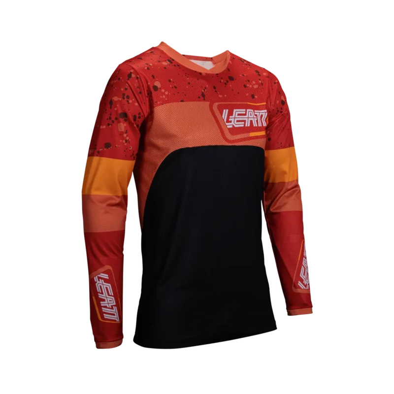 The Enduro 4.5 jersey is designed to withstand intense off-road riding. The jersey features snag-resistant mesh panels. A tailored cut ensures a perfect riding fit with or without body armor, and a silicone pant grip keeps the jersey in place. The fabric for both the jersey and pants is resistant to dirt, water, and stains, maintaining their style and functionality in all riding conditions.