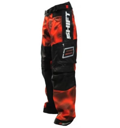 Pantalonii de motocross de la Shift Squadron Racepants ies in evidenta cu stilul lor mai larg pentru a asigura pilotului confort si mobilitate. Au o forma articulata in talie si la genunchi pentru a permite o pozitie cat mai agresiva pe saua de la motocicleta sau ATV Materialul este foarte rezistent, cu tesaturi din poliester. Pantalonii prezinta la talie o modalitate unica de fixare cu incheiere dubla pentru a sta cat mai bine prinsi. Sunt echipati cu sase buzunare generoase, oferindu-ne posibilitatea de a lua cu noi toate lucrurile de care avem nevoie. Vara, cu ajutorul fermoarului ii putem transforma in doar cateva secunde in pantaloni scurti. Prezinta gauri de aerisire care toamna sau iarna pot fi inchise.
